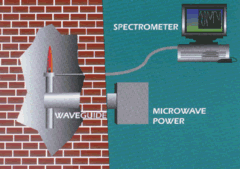 ![]() Pollution Monitoring: Exhaust gas flow from a furnace passes through a microwave plasma, becomes excited and emits light which is analyzed by a spectrometer to identify any hazardous elements.  |     ||||||||||||||||